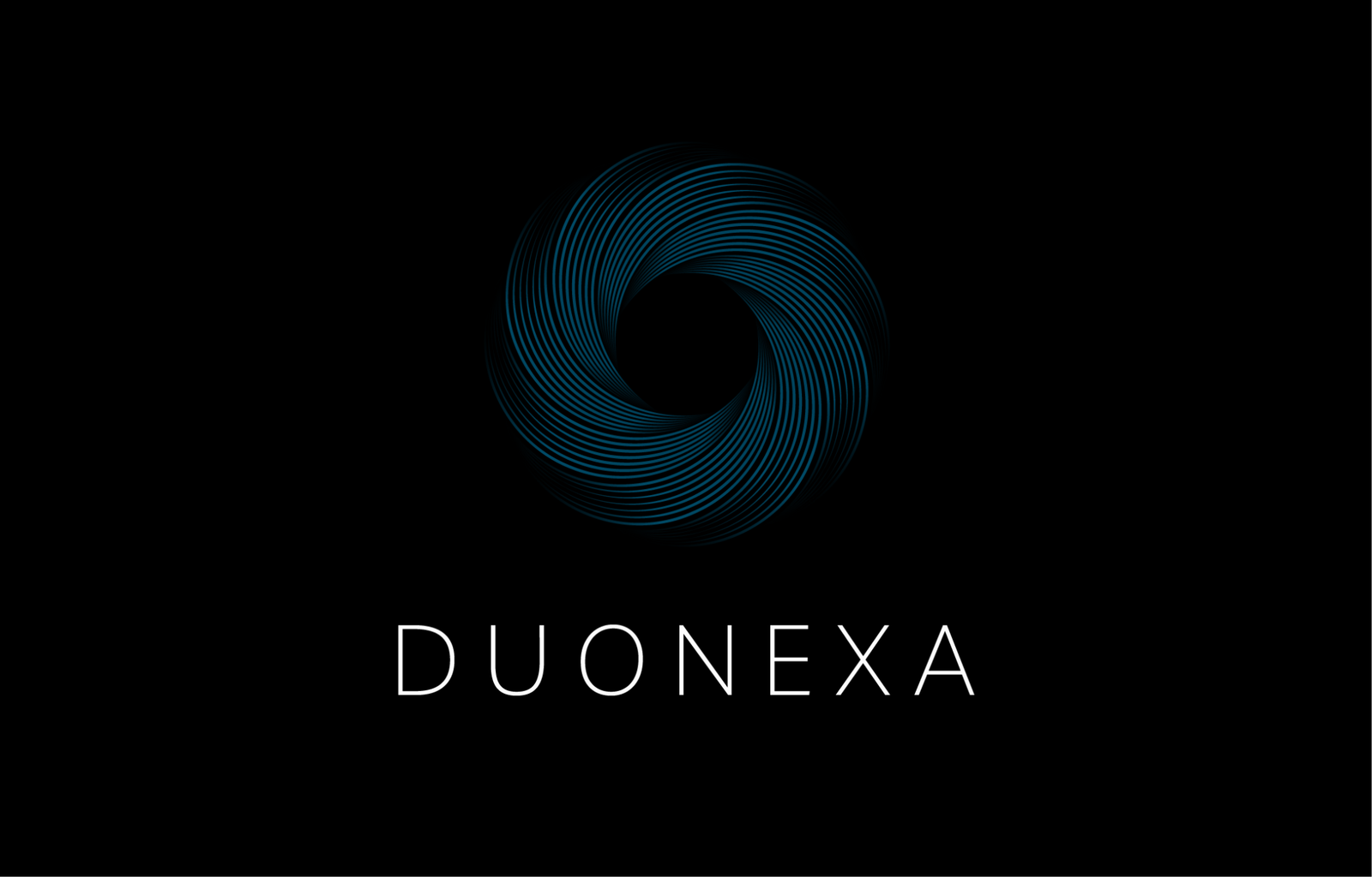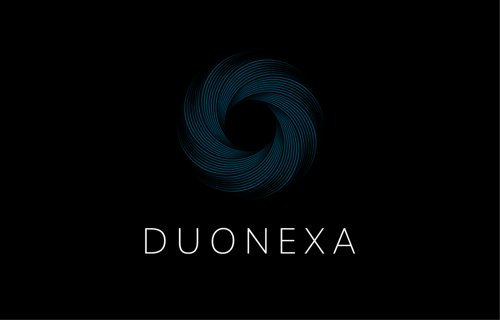 Two counter-rotating arcs form a single continuous motion. The mark is built on the name: duo, two forces, one system. The teal linework on black keeps it precise without being cold. No gradients, no texture, nothing decorative. The geometry does all the work.