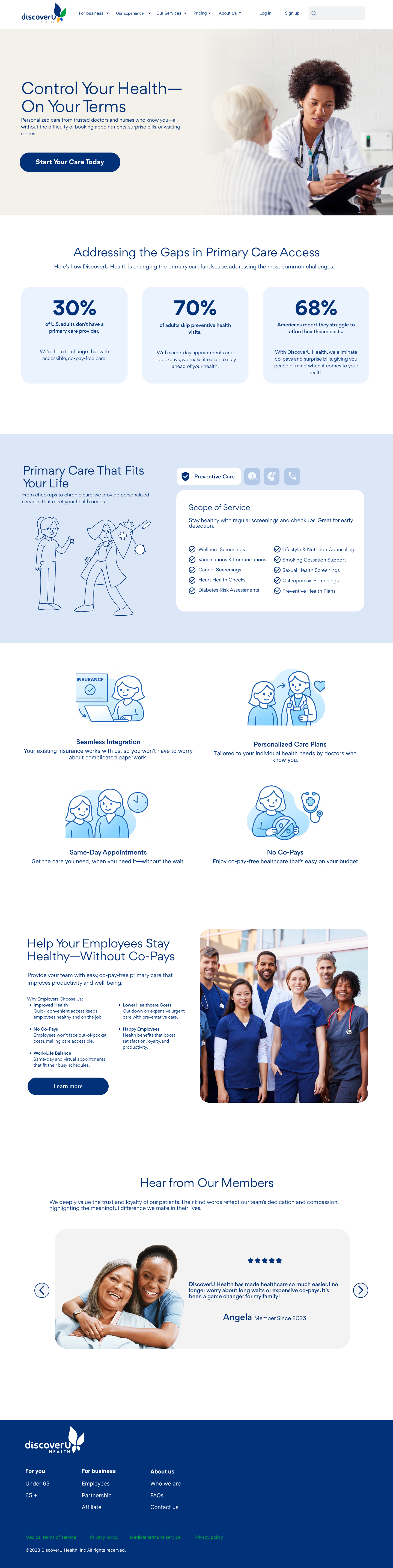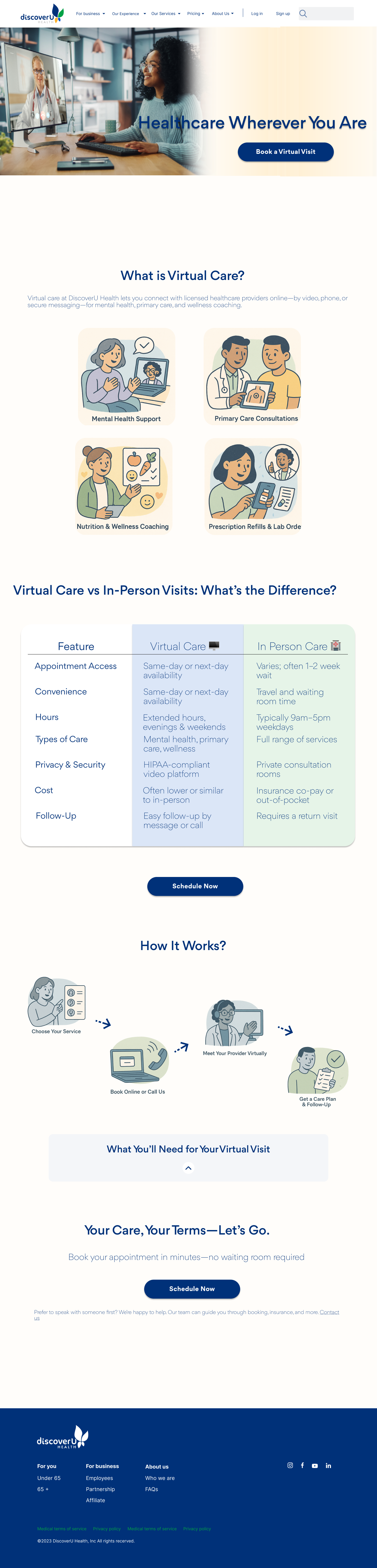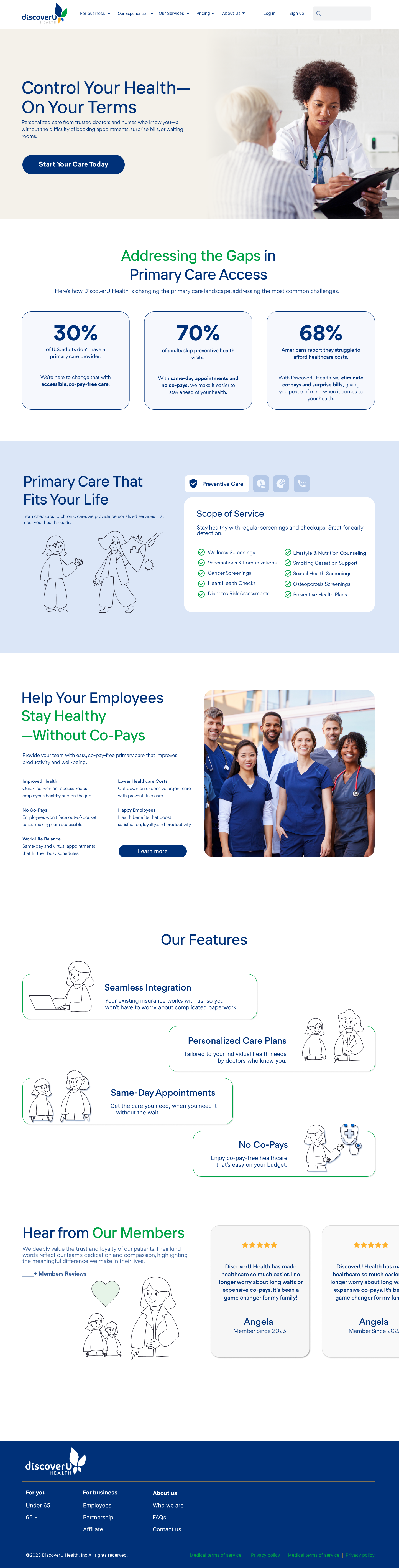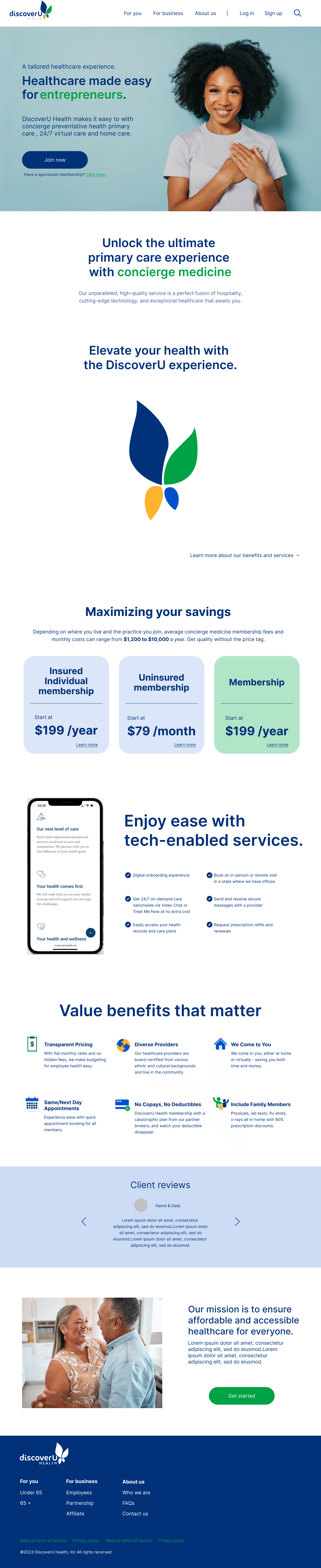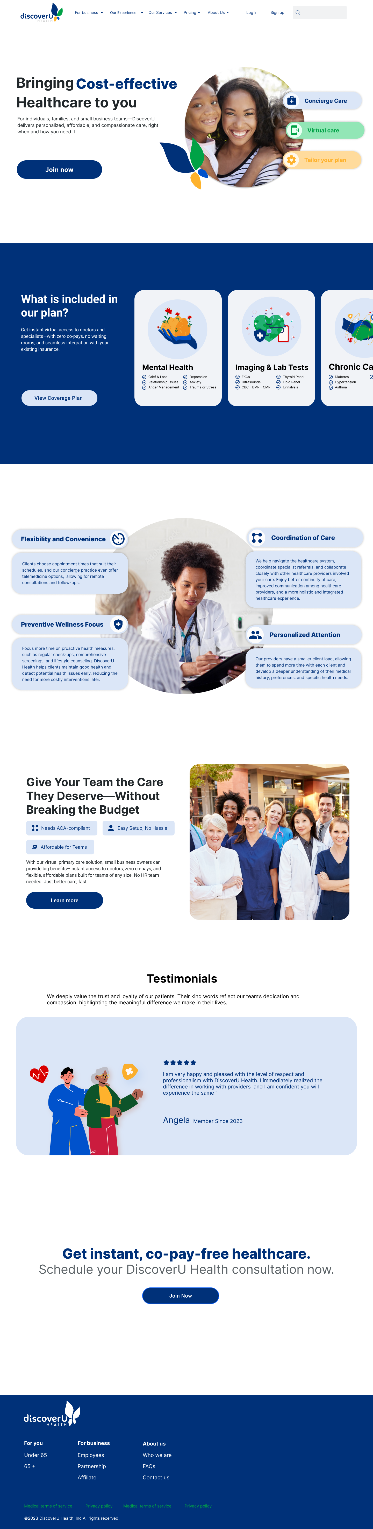 DiscoverU Health is a modern concierge care digital service offering integrative preventative care through affordable, transparent customizable plans for individuals, families, employers, small businesses.
